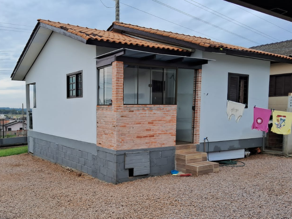 Casa no Loteamento Cechinel , 56,00m²,3 dormitórios,2 banheiros sociais,sala e cozinha integradas,garagem para 2 carros,edícula com 45,00m²,churrasqueira,piscina,área de serviço. Aceita carro e terreno mediante avaliação. Carro até 50.000,00 e terreno até 70.000,00