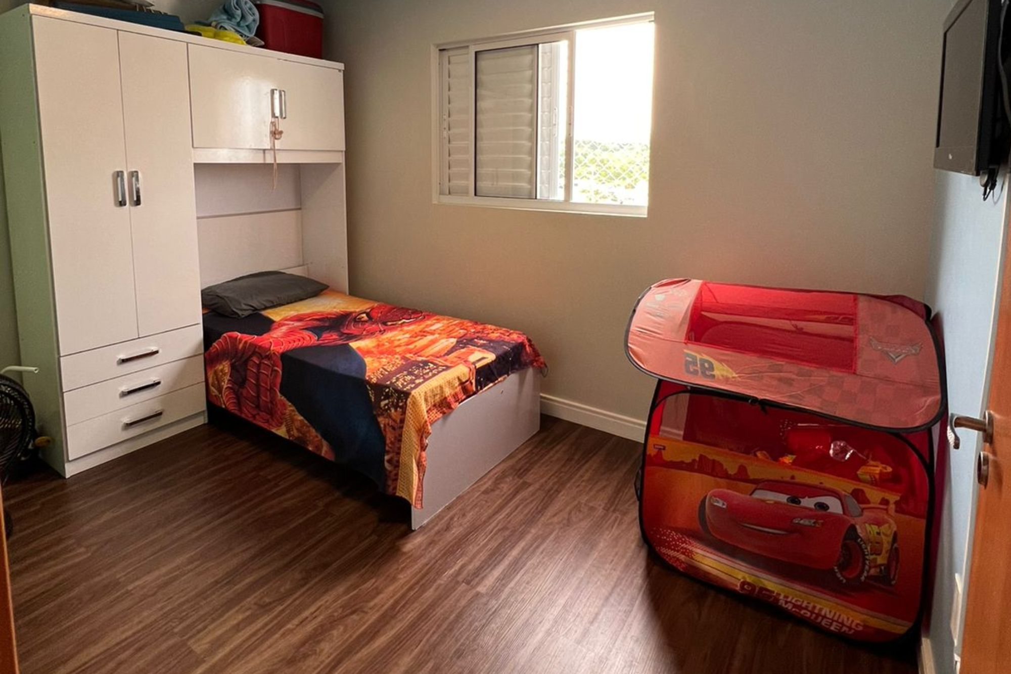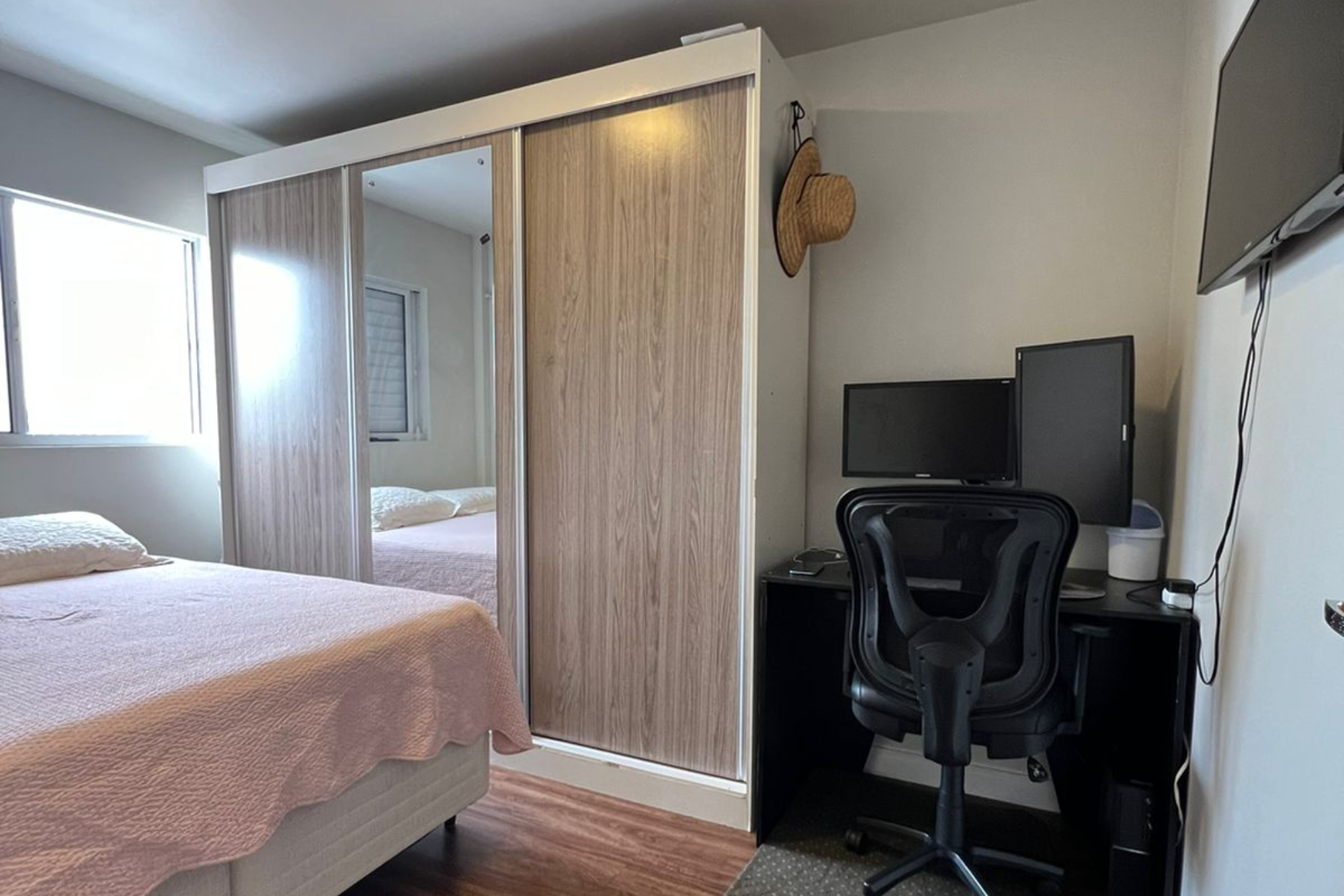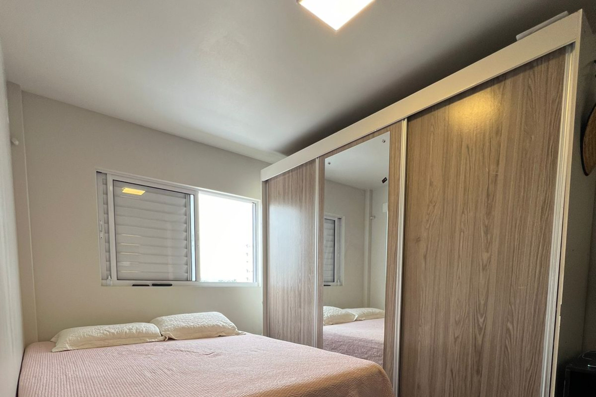 Apartamento no San Telmo. Dois dormitórios simples. Sexto andar, vista limpa da sacada. Piso vinílico.